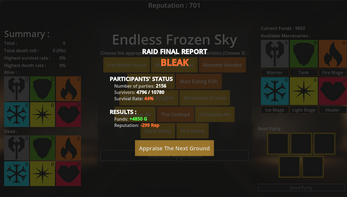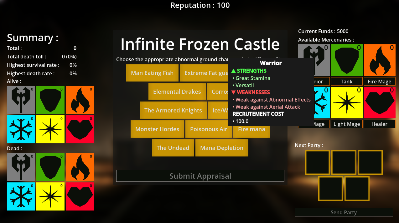 This a game about appraising strange and abnormal newly discovered forbidden grounds/dimensions. Your job is to use the allocated to you to recrute mercenaries and try to guess the new ground characteristics. Do your best; adventerers' lives depend on your judgement.